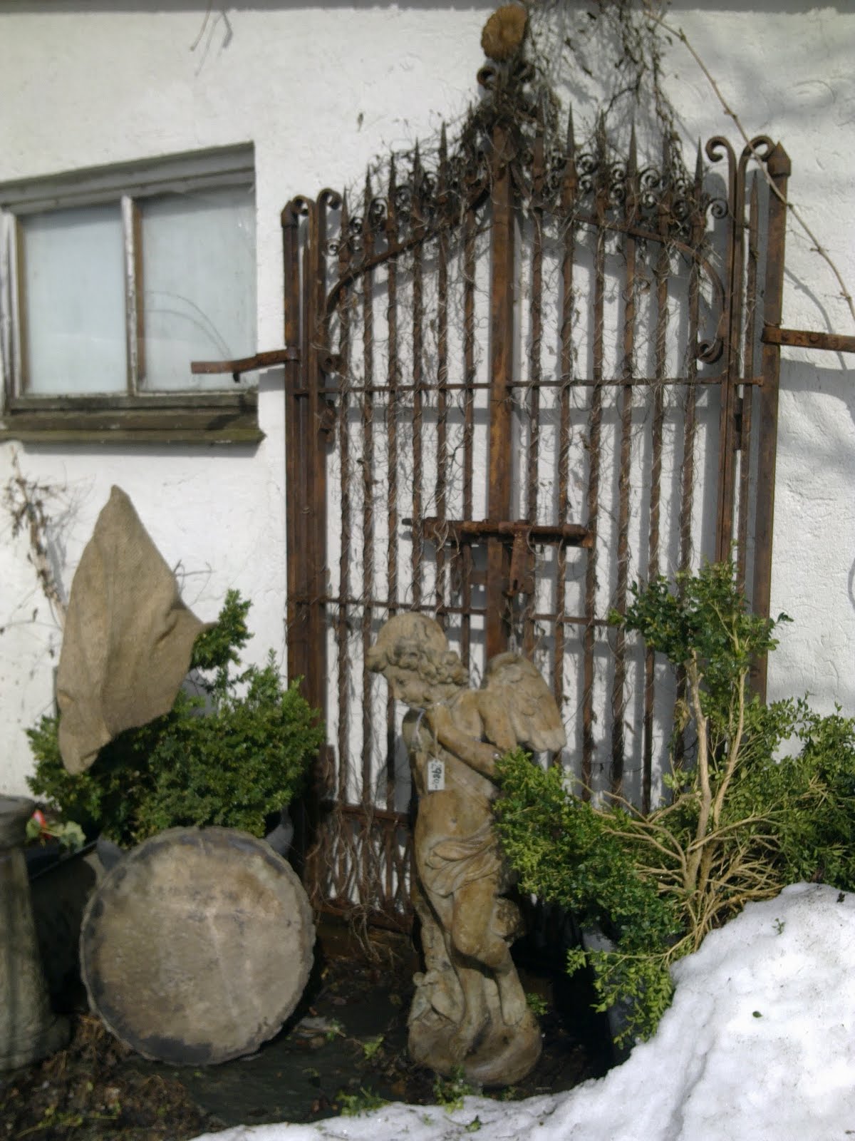 På Treider gård i Ås, en halvtimes kjøring fra Oslo, ligger Krukkegården. Det påstås at de har landets største utvalg av krukker, og det tviler jeg ikke på! Store jernkrukker, potter, sinkfat, fuglebad, gamle trekasser, englestatuer og lysthus finner du her i skjønn forening. En koselig gavebutikk med lysestaker, blomster, interiør og annet er det også, men der var det litt for mørkt til å fotografere med mobilkameraet. Jeg kom hjem med den patinerte leirpotta på det første fotoet og en rusten sinkpotte. Skal ta bilder av det når det kommer på plass :)